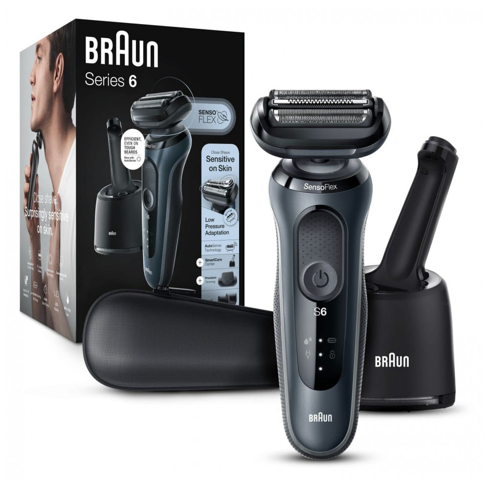 Barbeador Elétrico Masculino Portátil Braun 6075cc com com Aparador de Barba, SmartCare e Estojo de Couro, Preto