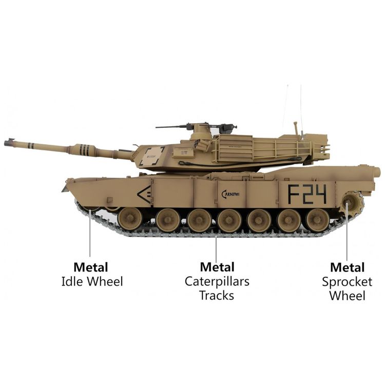 Tanque Militar US M1A2 Abrams de Controle Remoto com Torre Giratória de 360 graus, 2.4GHz, Escala 1:16, Heng Long