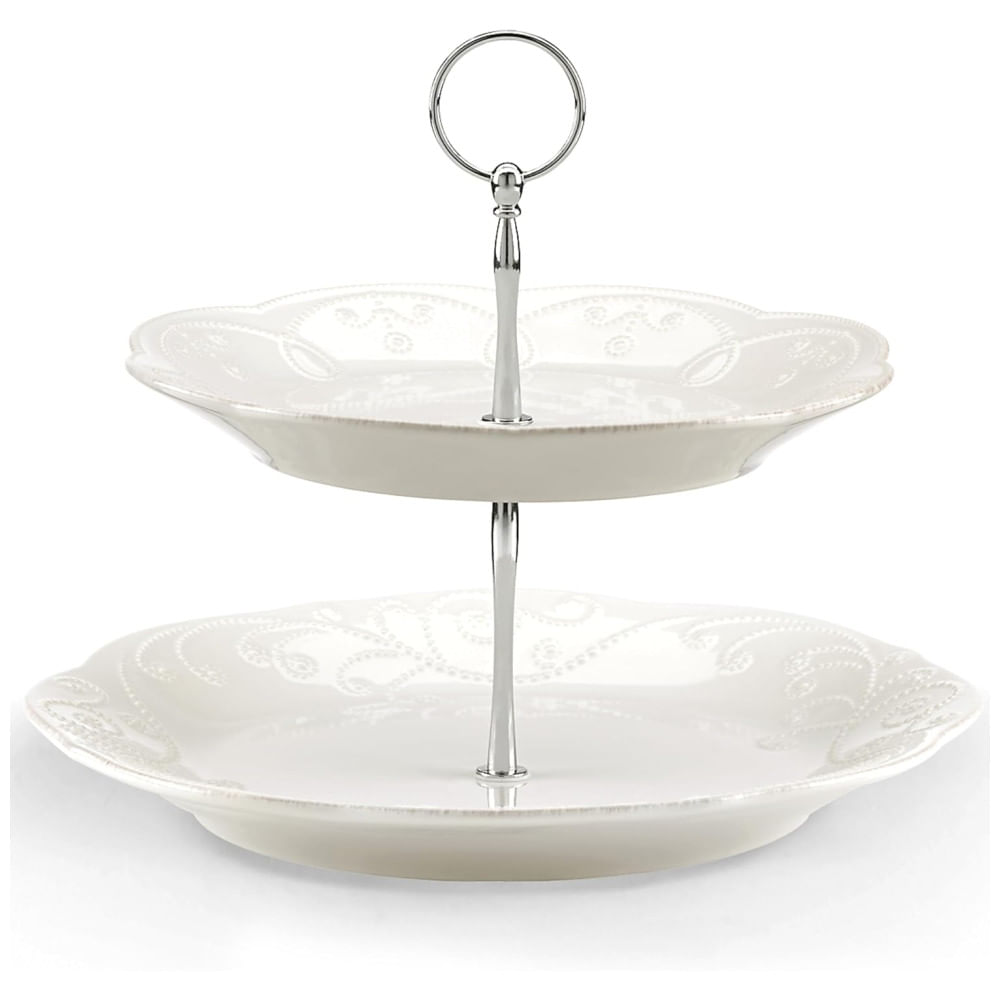 Bandeja de Servir em Porcelana, 2 Andares, Lenox French Perle, Branco