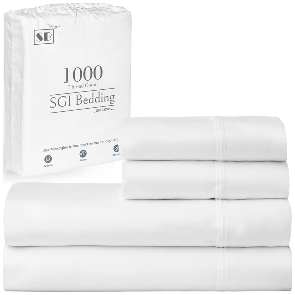 Conjunto de Lençóis em Algodão Egípcio de 1000 Fios, Tamanho King, Super Macio e Respirável, SGI bedding, Branco