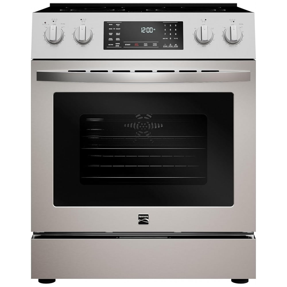 Fogão Kenmore Elétrico com Controle Frontal e 5 Elementos de Cooktop com 7 Opções de Potência de Cozimento, Convecção Real, Vapor e Autolimpeza