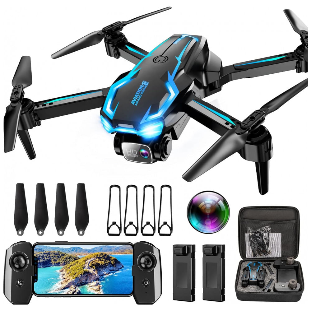 Atenção: Todos os produtos elétricos são 110V e necessitam de adaptador para a tomada no formato Brasileiro. Capture imagens aéreas deslumbrantes com a câmera 2K HD ajustável em até 90 graus, perfeita para paisagens ou momentos em família. Desfrute da transmissão FPV em tempo real para o seu smartphone via WiFi e compartilhe suas aventuras nas redes sociais com apenas um toque! Decolagem e pouso fáceis com controle de um toque, enquanto o Modo Altitude Hold garante uma filmagem estável. Controles de voo inteligentes e estáveis, com Posicionamento Óptico de Fluxo aprimorado e Modo Headless para uma pilotagem intuitiva - basta inclinar o controle para voar em qualquer direção! Leve e dobrável, pesando menos de 2 kg e dobrando para apenas 12,7 x 7,6 x 5,1 centímetros, este mini drone cabe no seu bolso ou mochila. Leve para onde quiser - seja para caminhadas, viagens ou explorações - e nunca perca uma foto aérea épica! Inclui 2 baterias recarregáveis, totalizando 20 minutos de voo. Alertas de baixa voltagem e proteção contra sobrecarga garantem a segurança. Protetores de hélice e lâminas sobressalentes evitam danos, enquanto o controle remoto ergonômico garante precisão para iniciantes e especialistas. Especificações: Cor: Preto e Azul, Peso do Item: 1 kg, Composição da Célula da Bateria: Íon de Lítio, Baterias Inclusas: Sim, Dimensões do Produto: 22,86 cm x 17,78 cm x 7,62 cm, Fabricante: Shantou Xintuo Intelligent Technology Co., Ltd., Número do Modelo: X69, Baterias: 2 baterias de íon de lítio necessárias (incluídas), Número da Peça do Fabricante: X69 Voltagem:110 volts