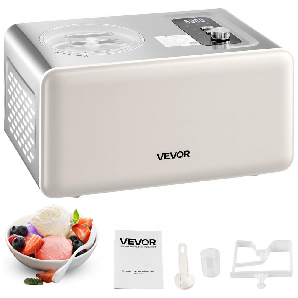 Máquina de Sorvete Automática VEVOR com Compressor Integrado, 1,89 Litros Sem Precisar Congelar, Máquina de Sorvete de Gelato Elétrica